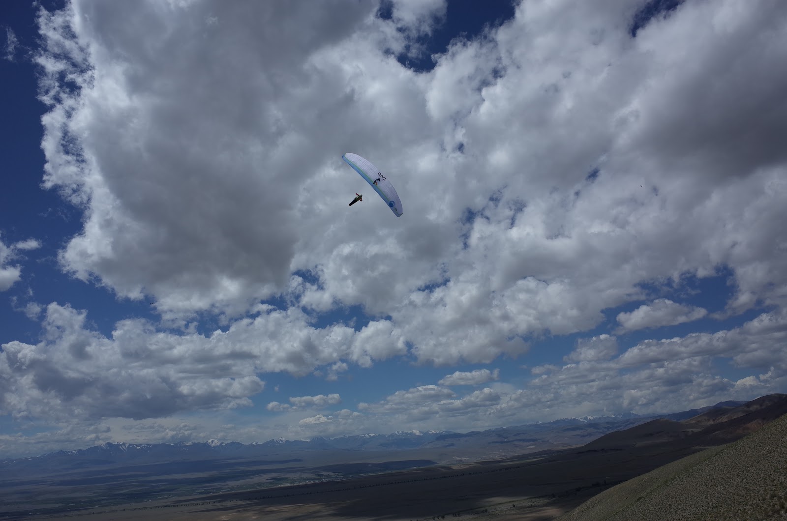 Po viac ako sto kilometroch pristávame v stepi vo výške takmer 2000m. Zbalím padák a pristavý sa pri mne kočovník, bol loviť ryby a že inej cesty niet, ako že ma musí k sebe domov pozvať na čaj. Odpor nemá zmysel, pokecáme, nažvácham sa posúchového chleba a idem peškom tahet. Plán je dôjsť pod kopec, ktorý má mimo iné viac ako 1000m prevýšenia, utáboriť sa ráno ho zdolať a odleteiť či už ďalej do divočiny alebo do civilizácie.