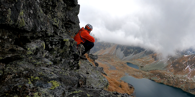 Nástup Zlomiskami a Rumanovou je už dáky krátky, poznám každý kameň. Dnes za mnou asi pôjde Fševed a zrobí mi pár záberov tým svojím ďalekonosným delom. Beng a leziem teda. Už presne viem, kade a čo, takže to pomerne rýchlo odsýpa. V kľúčovej dĺžke najprv nájdem rukavice a zarypnem sa do špáry. Trochu mám obavy, ako to zvládnuť, pretože batoh, robota okolo sólo istenia a samotné zakladanie friendov bude z lezeckej pozície, teda nohy zväčša len na trenie. Ale aj pre to som tu. Posúvať svoje hranice, hoc nie som žiaden športovo zameraný a výkonný lezec a čísla ma nezaujímajú pre porovnávanie sa s ostatnými, len ako možnosť posúvať sa sám pre seba a za svojím cieľom. Liezť a lietať v stredných horách sólo, po vlastnom...dokončiť Seven Virgin Summits na svoj štýl...tam sa chcem dopracovať.